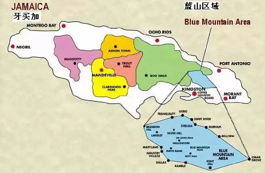 The Blue Mountain range is located in eastern Jamaica. The mountain is named because when the weather is clear, direct sunlight hits the azure Caribbean Sea, and the peaks reflect the brilliant blue light of the water. The highest peak of Blue Mountain reaches 2,256 meters (coffee can only be grown below 1,700m, with areas above designated as protected forest), making it the highest peak in the Caribbean region and a famous tourist destination. Located in the coffee belt, this area features fertile volcanic soil, fresh unpolluted air, humid climate with year-round fog and rain, average precipitation of 1,980 millimeters, and temperatures around 27°C. Such climate conditions have created the world-renowned Jamaican Blue Mountain Coffee, as well as the world's highest-priced coffee.