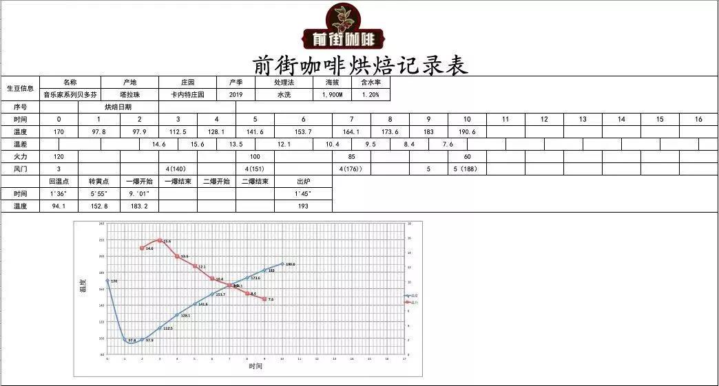 FrontStreet Coffee's roaster felt that this Beethoven bean has high density, so decided to roast it to a medium-light level to preserve the bright acidity while showcasing the bean's fruity notes, and also enhancing richness and balance. Preheat the roaster to 170°C before loading, adjust the heat to 120, open the damper to 3, return to temperature at 1'36", maintain heat;
