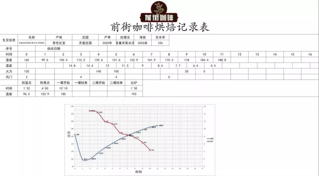 Yellowing point at 6'00", when bean surface turns yellow and grassy aromas completely disappear, entering dehydration phase. At 8'27", bean surface shows ugly wrinkles and black markings, with toasted bread aromas distinctly transforming into coffee fragrance - definable as first crack prelude. At this moment, listen carefully for first crack sounds. First crack begins at 10'10", fully open damper, reduce heat to 50 at 178°C; develop for 1'30" after first crack, discharge at 193°C.
