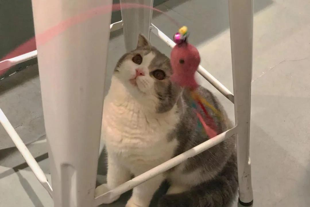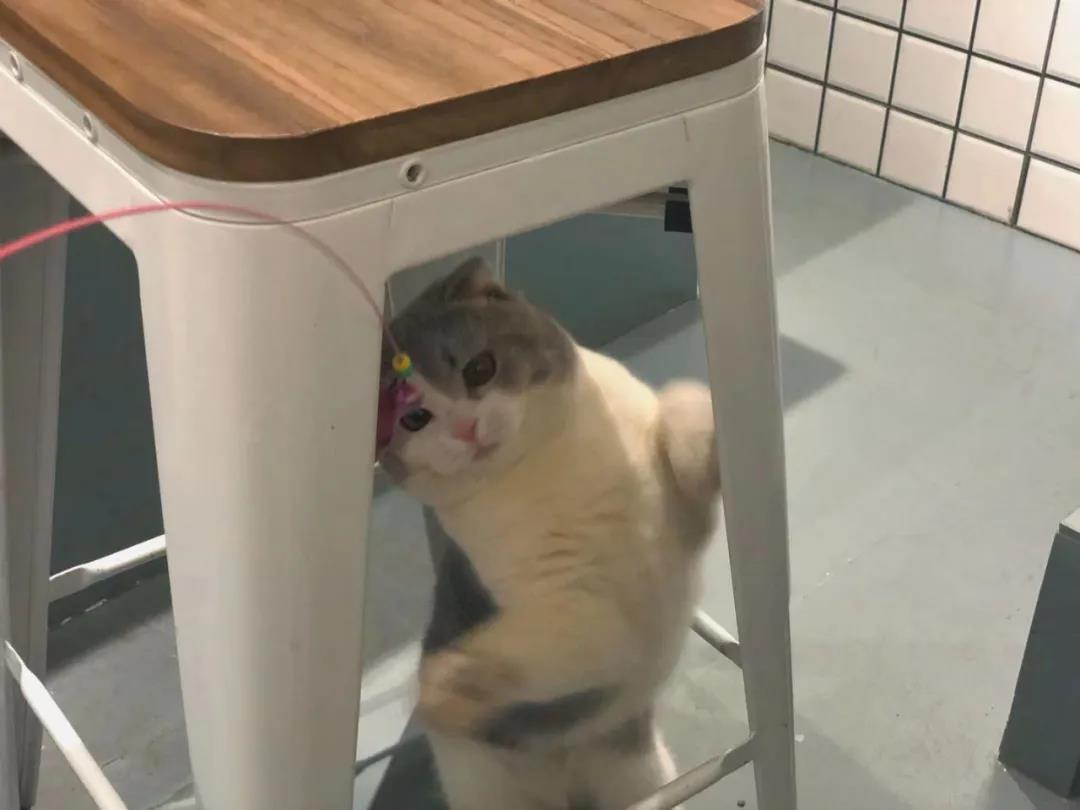Suppressing the urge to pinch its face, I "grabbed" the nearest cat teaser and had a "duel" with the little fatty for a while~