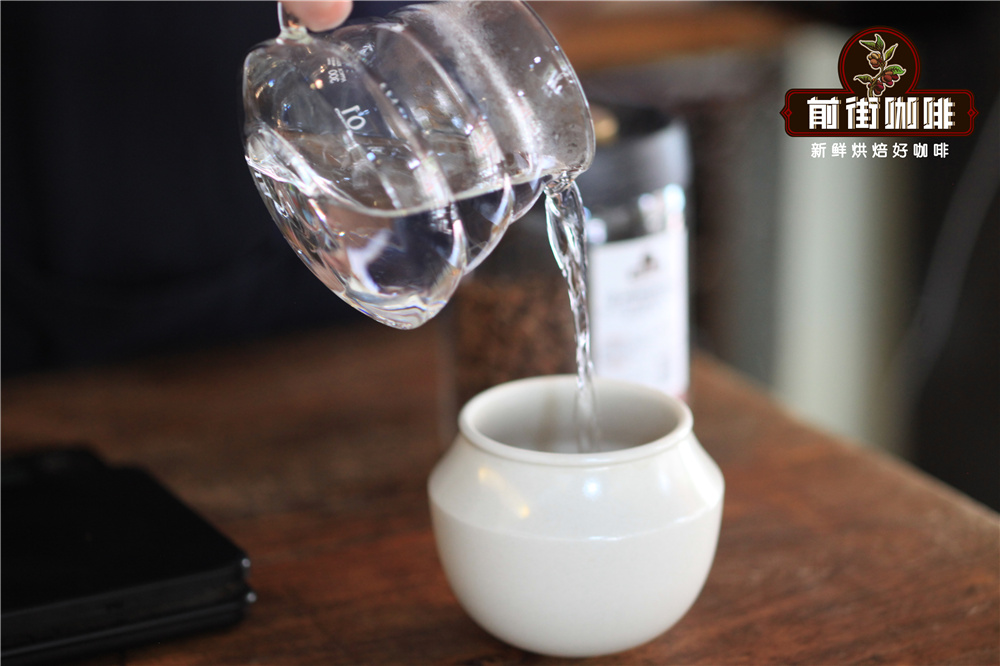 ③ Preheat equipment. Place the serving pot and dripper on the electronic scale, add the filter paper, and wet it with hot water to ensure it adheres to the dripper. The hot water also preheats the dripper and the pot below. Add hot water to the drinking cups to maintain their temperature. Because when coffee encounters cold temperatures, the tannic acid components will activate, making the coffee very acidic. Note: remember to pour out the hot water used to preheat the lower pot!