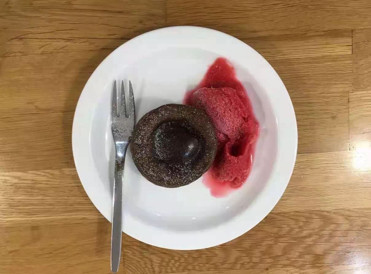 The hot dark chocolate lava cake had just the right amount of sweetness. When it was about to become too sweet, a spoonful of cool raspberry sorbet provided both acidity and coldness, which was very refreshing. Overall, the two were paired perfectly.