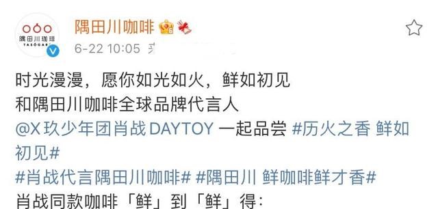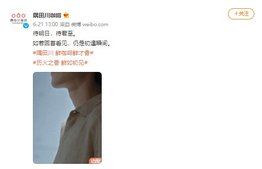 Sumida River Coffee's official Weibo account began teasing the ambassador announcement at 10:05 AM yesterday, June 21.