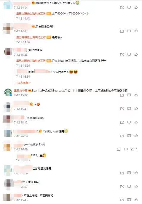 Just today, Starbucks introduced another new product. Around 2:32 PM on July 12th, Starbucks Reserve Shanghai Roastery released their limited edition bear doll.