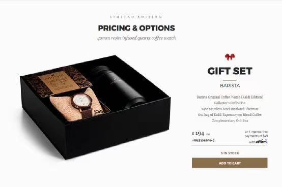 Their gift box set offers even better value. In addition to the watch, the gift box includes a coffee canister, a 14oz stainless steel thermos, and a 6oz bag of Kaldi's espresso blend beans. The set is priced at only $194 (approximately 1256 RMB).