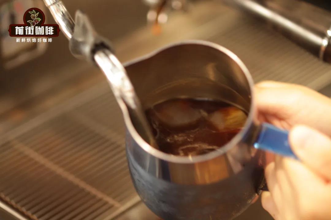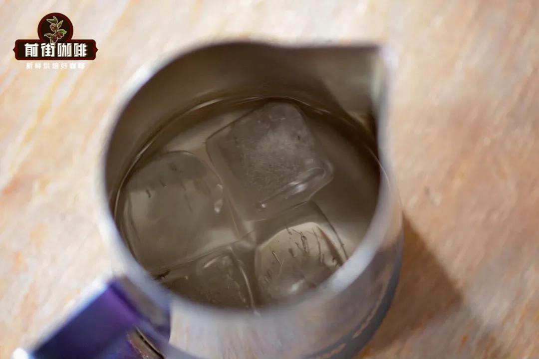 Add 100g of ice cubes and 140g of room temperature water to a latte pitcher (this is the amount of water FrontStreet Coffee needs for making Americano; everyone should adjust according to their actual situation). This pitcher of ice water is the "key player" for Americano latte art, especially crucial during the frothing process of the "milk foam" later.