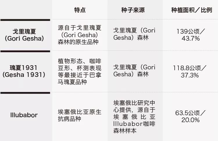 Gesha Village's Gesha coffee blend, incorporating three varieties: Gori Gesha, Gesha 1931, and Illubabor (Ethiopia's native disease-resistant variety).