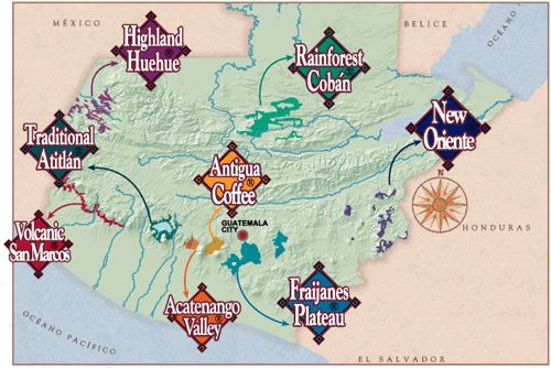 Guatemala is located in the Central American isthmus, with many volcanic-formed mountain and plateau terrains within its borders. It produces high-quality Central American high-altitude strictly hard beans and is the world's ninth-largest coffee bean-producing country. Guatemala's main coffee producing regions include seven major areas: Antigua, Huehuetenango, Atitlan, Coban, Fraijanes, San Marcos, and Acatenango. All coffee beans produced in these seven major regions are Arabica varieties.