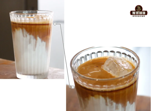 The process of making iced latte should also be quick. Here, "quick" means that the time ice and milk spend in the glass should be as short as possible, and freshly extracted espresso should be poured into the glass immediately. This is why freshly made iced latte coffee presents a gradient layer formed by milk and coffee. If ice soaks in milk for too long, the ice cubes will melt, and a water layer will appear on top, making the entire coffee taste diluted when consumed. Espresso is even more sensitive—freshly extracted espresso has very rich crema, but after 30 seconds, the crema significantly decreases. Espresso without crema also has difficulty floating on the surface.