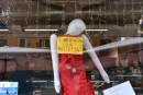 For professional coffee knowledge exchange and more coffee bean information, please follow Coffee Workshop (WeChat public account: cafe_style). For more specialty coffee beans, please add FrontStreet Coffee's private WeChat account: qjcoffeex. Recently, it was reported that an inflatable figure was hanging from the glass window of a cafe in Rome, Italy.