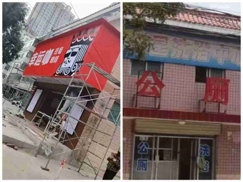 According to local residents, the renovated building is a public toilet in the county that has been in operation for 30 years. The second floor is a bathing center, which is regarded as a landmark local landmark."The public toilet has been open for 30 years, and everyone in the county knows it." However, on October 21, netizens discovered that the public toilet had been renovated for a month and had recently been installed with the sign "Lucky Coffee freshly ground coffee". It is suspected that it will be open to the public soon.