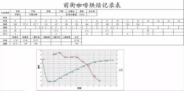 Charge at 190°C, heat at 120, airflow at 3; Temperature return point: 1'40", when furnace temperature reaches 145°C, open airflow to 4, heat unchanged; When furnace temperature reaches 166°C, bean surface turns yellow, grassy aroma completely disappears, entering dehydration stage. When furnace temperature reaches 188°C, adjust heat to 60°C, airflow to 5; At 8'37", bean surface shows ugly wrinkles and black spots, toast aroma clearly turns to coffee aroma, can be defined as prelude to first crack. At this time, listen carefully for first crack sounds. First crack starts at 9'00", airflow unchanged, develop for 3 minutes after first crack, discharge at 198°C.
