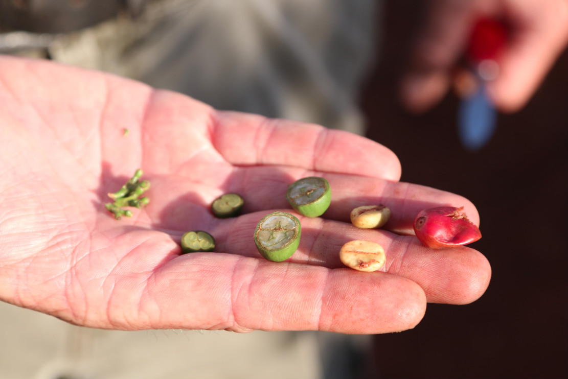 Above: Timtim Mandheling full natural processed green beans, which are a hybrid of Arabica and Robusta, called Timor, known as Timtim variety in Indonesia.