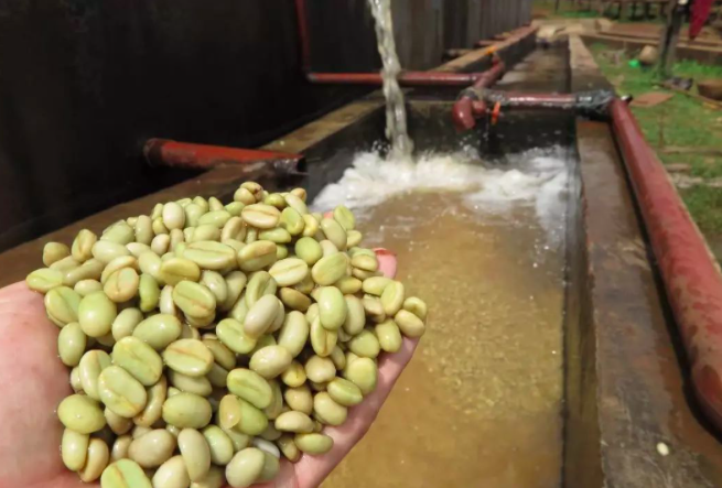 The screened coffee cherries are put into a pulping machine to initially remove their skin and pulp; the coffee beans with remaining pulp and mucilage are placed in water to ferment for about 24 hours; after fermentation, the parchment coffee beans are placed in flowing water channels to wash away their pulp and mucilage; after washing, the coffee beans are air-dried or dried with drying machines to reduce the moisture content to about 12%. Finally, the parchment is removed from the green coffee beans.