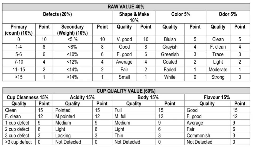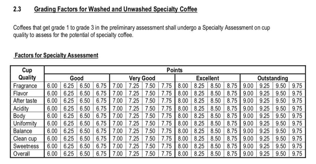 Among these, Specialty and Commercial are for international export markets. ECX divides green coffee beans into nine grades based on the total score of physical attributes and cupping flavor characteristics, with physical characteristics accounting for 40% and cupping quality for 60%.