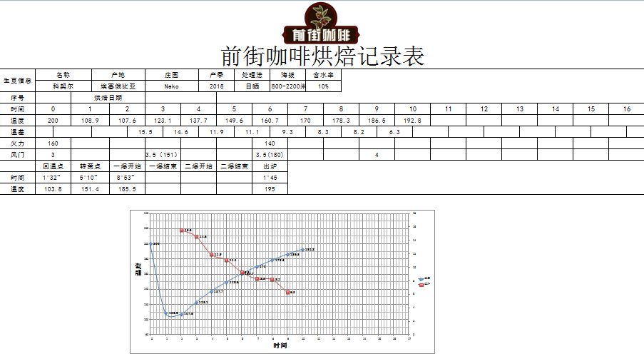 Preheat roaster to 200°C, heat damper at 3, flame at 150. Keep damper unchanged. Return temperature at 1'35". When roaster temperature reaches 140°C, adjust flame to 180, damper to 4. At this point, bean surface turns yellow, grassy aroma completely disappears, entering dehydration stage. When roaster temperature reaches 170°C, adjust flame to 150, damper unchanged.