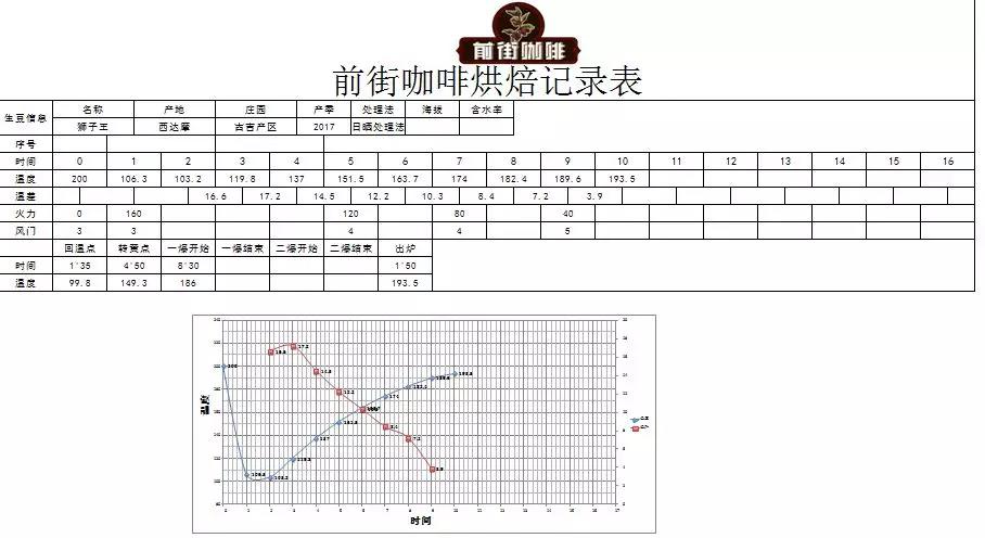 In the first batch of roasting, the drop temperature was relatively high, with an entry temperature of 200°C and relatively high heat. During the roasting process, it was discovered that these beans have extremely high altitude and are very hard. To avoid uneven roasting caused by inconsistent green bean sizes, a roasting approach of extended dehydration with gradual heat reduction and steady temperature rise was adopted. The heat was adjusted when the beans entered the yellowing point, completed dehydration, and showed first crack signs, avoiding surface scorching. The beans were dropped between dense first crack and the end of first crack, shortening the caramelization reaction time to preserve flavor clarity and floral-fruity aromas.