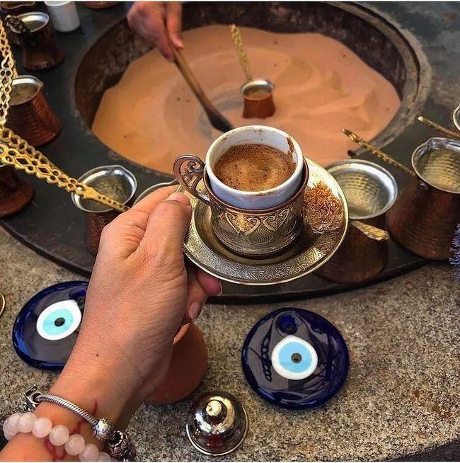 Unlike the coffee we usually drink, Turkish coffee is prepared by brewing, and Turkish coffee is consumed with both the grounds and liquid together.