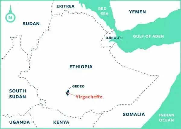 Yirgacheffe is subordinate to the Sidamo region but has been separated due to its unique flavor profile. In addition to the town of Yirgacheffe itself, it includes three sub-regions: Wenago, Kochere, Gelena, and Abaya.