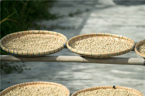 After soaking, the coffee beans undergo their first drying at the farmers' homes. At this point, the coffee beans' moisture content will drop to between 20% and 35%.